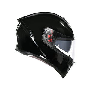 AGV’s latest version of this premium sport helmet now features a new construction for the inner liner, designed with high-performance fabrics and with no stitching in sensitive areas, making for an extremely comfortable fit. The lightweight shell is made from a carbon-fi berglass mix, while stability and aerodynamic performance are maximized thanks to an incorporated spoiler. The Integrated Ventilation System (IVS) has vents that are hollowed into the shell, and there’s also an internal drop-down sun visor, a removable nose guard and a new wind protector that keeps noise to a minimum.